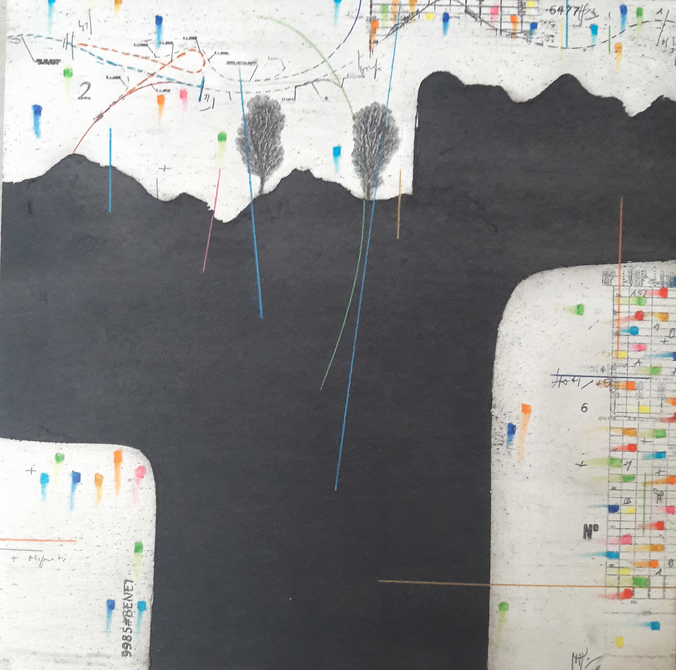 enamel and crayons on paper